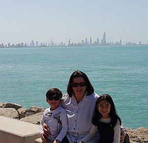 My Mom and the two oldest Grandchildren with the Kuwait skyline in the background.